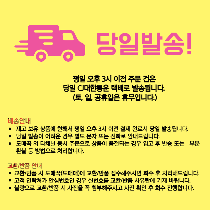 ¹Ýǰ¹è¼Ûºñ : 3,000¿ø (±¸¸ÅÀÚ ´Ü¼ø º¯½ÉÀ¸·Î ÀÎÇÑ ¹Ýǰ¿¡¸¸ ¹Ýǰºñ¿ë ºÎ°ú) Ãʱ⠹è¼Ûºñ°¡ ¹«·á¹è¼ÛÀÌ´ø »óǰÀº ¹Ýǰ¹è¼Ûºñ°¡ ¿Õº¹À¸·Î û±¸µÉ ¼ö ÀÖÀ¸¸ç, ¼ö·®º° ºñ·Ê ¹æ½ÄÀÇ ¹è¼ÛºñÀÎ °æ¿ì ¼ö·®¸¶´Ù ºÎ°úµÇ´Â ºñ¿ëÀÌ »óÀÌÇÏ¿© °ø±Þ»ç¿Í ÇùÀǰ¡ ÇÊ¿äÇÕ´Ï´Ù. Á¦ÁÖ ¹× µµ¼»ê°£ ¹è¼Ûºñ´Â ¹Ýǰ ¹è¼Ûºñ¿¡ Æ÷ÇÔµÇÁö ¾ÊÀ¸´Ï °ø±Þ»ç¿Í ÇùÀǰ¡ ÇÊ¿äÇÕ´Ï´Ù. ±³È¯ ºñ¿ëÀº º¸Åë ¹Ýǰ¹è¼ÛºñÀÇ 2¹è ºÎ°úµÇ³ª, °æ¿ì¿¡ µû¶ó ´Ù¸¦ ¼ö ÀÖÀ¸¹Ç·Î °ø±Þ»ç¿¡ ¹®Àǹٶø´Ï´Ù. |