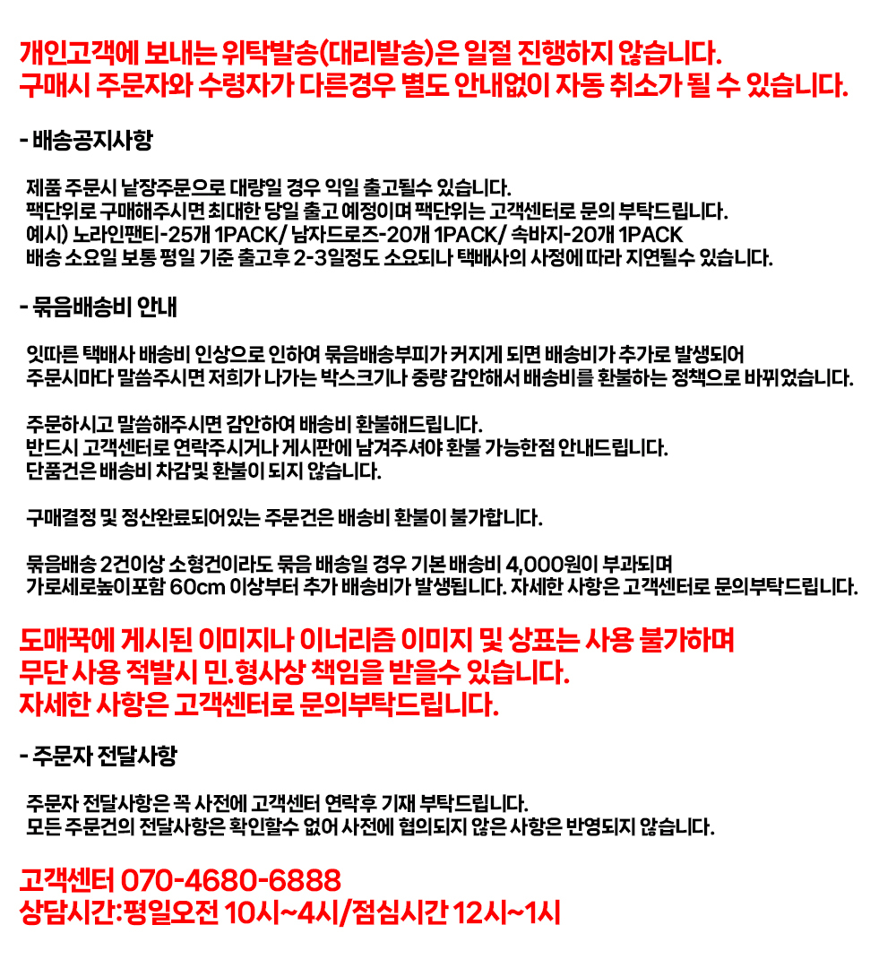 ¹Ýǰ¹è¼Ûºñ : 3,000¿ø (±¸¸ÅÀÚ ´Ü¼ø º¯½ÉÀ¸·Î ÀÎÇÑ ¹Ýǰ¿¡¸¸ ¹Ýǰºñ¿ë ºÎ°ú) Ãʱ⠹è¼Ûºñ°¡ ¹«·á¹è¼ÛÀÌ´ø »óǰÀº ¹Ýǰ¹è¼Ûºñ°¡ ¿Õº¹À¸·Î û±¸µÉ ¼ö ÀÖÀ¸¸ç, ¼ö·®º° ºñ·Ê ¹æ½ÄÀÇ ¹è¼ÛºñÀÎ °æ¿ì ¼ö·®¸¶´Ù ºÎ°úµÇ´Â ºñ¿ëÀÌ »óÀÌÇÏ¿© °ø±Þ»ç¿Í ÇùÀǰ¡ ÇÊ¿äÇÕ´Ï´Ù. Á¦ÁÖ ¹× µµ¼»ê°£ ¹è¼Ûºñ´Â ¹Ýǰ ¹è¼Ûºñ¿¡ Æ÷ÇÔµÇÁö ¾ÊÀ¸´Ï °ø±Þ»ç¿Í ÇùÀǰ¡ ÇÊ¿äÇÕ´Ï´Ù. ±³È¯ ºñ¿ëÀº º¸Åë ¹Ýǰ¹è¼ÛºñÀÇ 2¹è ºÎ°úµÇ³ª, °æ¿ì¿¡ µû¶ó ´Ù¸¦ ¼ö ÀÖÀ¸¹Ç·Î °ø±Þ»ç¿¡ ¹®Àǹٶø´Ï´Ù. |