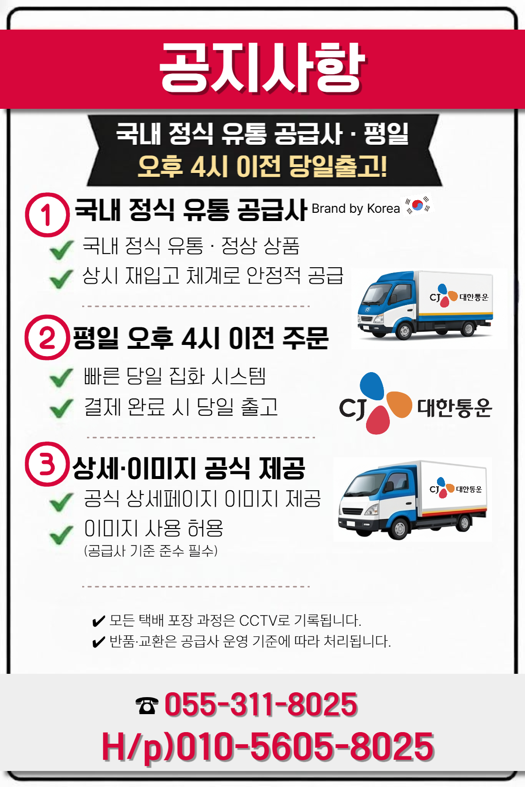 ¹Ýǰ¹è¼Ûºñ : 3,000¿ø (±¸¸ÅÀÚ ´Ü¼ø º¯½ÉÀ¸·Î ÀÎÇÑ ¹Ýǰ¿¡¸¸ ¹Ýǰºñ¿ë ºÎ°ú) Ãʱ⠹è¼Ûºñ°¡ ¹«·á¹è¼ÛÀÌ´ø »óǰÀº ¹Ýǰ¹è¼Ûºñ°¡ ¿Õº¹À¸·Î û±¸µÉ ¼ö ÀÖÀ¸¸ç, ¼ö·®º° ºñ·Ê ¹æ½ÄÀÇ ¹è¼ÛºñÀÎ °æ¿ì ¼ö·®¸¶´Ù ºÎ°úµÇ´Â ºñ¿ëÀÌ »óÀÌÇÏ¿© °ø±Þ»ç¿Í ÇùÀǰ¡ ÇÊ¿äÇÕ´Ï´Ù. Á¦ÁÖ ¹× µµ¼»ê°£ ¹è¼Ûºñ´Â ¹Ýǰ ¹è¼Ûºñ¿¡ Æ÷ÇÔµÇÁö ¾ÊÀ¸´Ï °ø±Þ»ç¿Í ÇùÀǰ¡ ÇÊ¿äÇÕ´Ï´Ù. ±³È¯ ºñ¿ëÀº º¸Åë ¹Ýǰ¹è¼ÛºñÀÇ 2¹è ºÎ°úµÇ³ª, °æ¿ì¿¡ µû¶ó ´Ù¸¦ ¼ö ÀÖÀ¸¹Ç·Î °ø±Þ»ç¿¡ ¹®Àǹٶø´Ï´Ù. |
