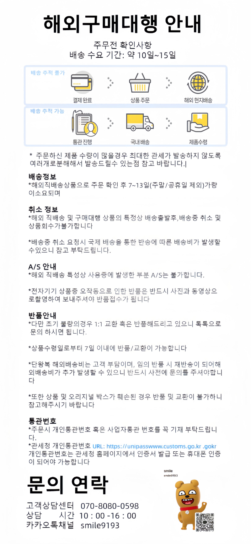 ÀúÈñ°¡ ÆÇ¸ÅÇÏ´Â Á¦Ç°Àº °üºÎ°¡¼¼°¡ Æ÷ÇԵǾî ÀÖÁö ¾Ê½À´Ï´Ù. °üºÎ°¡¼¼°¡ ¹ß»ýÇҽÿ¡´Â ¼öÃëÀÎÀÌ ºÎ´ãÇÏ½Ã°Ô µË´Ï´Ù. °í°´Ãø °ü¼¼¸¦ ³³ºÎÁö¿¬À¸·Î ÀÎÇØ ¹è¼ÛÀÌ ´Ê¾îÁø °æ¿ì ¹Ýǰ ÁÖ¹®Ãë¼Ò ºÒ°¡ |