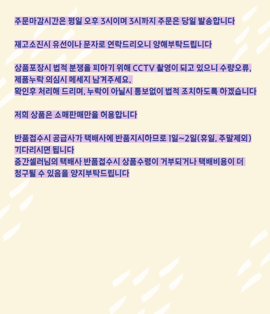 ¹Ýǰ¹è¼Ûºñ : 3,500¿ø (±¸¸ÅÀÚ ´Ü¼ø º¯½ÉÀ¸·Î ÀÎÇÑ ¹Ýǰ¿¡¸¸ ¹Ýǰºñ¿ë ºÎ°ú) Ãʱ⠹è¼Ûºñ°¡ ¹«·á¹è¼ÛÀÌ´ø »óǰÀº ¹Ýǰ¹è¼Ûºñ°¡ ¿Õº¹À¸·Î û±¸µÉ ¼ö ÀÖÀ¸¸ç, ¼ö·®º° ºñ·Ê ¹æ½ÄÀÇ ¹è¼ÛºñÀÎ °æ¿ì ¼ö·®¸¶´Ù ºÎ°úµÇ´Â ºñ¿ëÀÌ »óÀÌÇÏ¿© °ø±Þ»ç¿Í ÇùÀǰ¡ ÇÊ¿äÇÕ´Ï´Ù. Á¦ÁÖ ¹× µµ¼»ê°£ ¹è¼Ûºñ´Â ¹Ýǰ ¹è¼Ûºñ¿¡ Æ÷ÇÔµÇÁö ¾ÊÀ¸´Ï °ø±Þ»ç¿Í ÇùÀǰ¡ ÇÊ¿äÇÕ´Ï´Ù. ±³È¯ ºñ¿ëÀº º¸Åë ¹Ýǰ¹è¼ÛºñÀÇ 2¹è ºÎ°úµÇ³ª, °æ¿ì¿¡ µû¶ó ´Ù¸¦ ¼ö ÀÖÀ¸¹Ç·Î °ø±Þ»ç¿¡ ¹®Àǹٶø´Ï´Ù. |