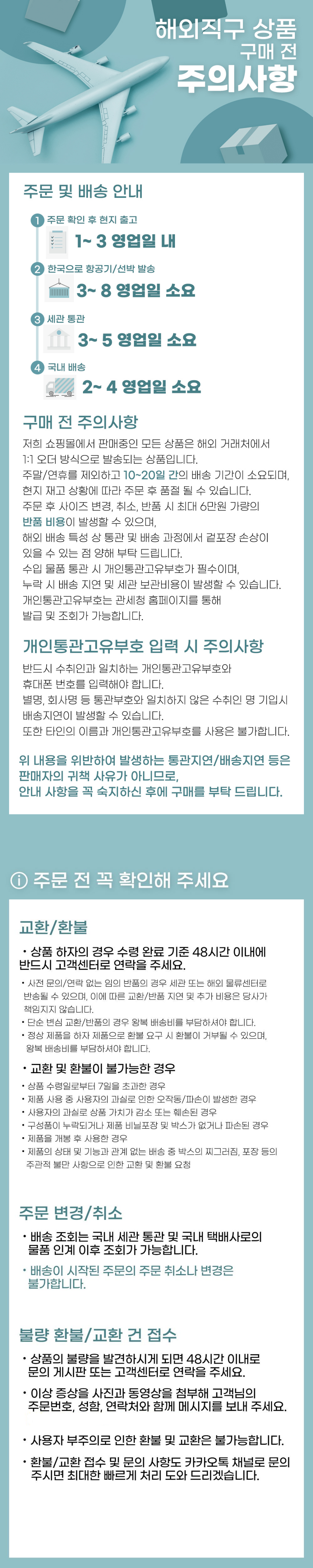 ¹Ýǰ¹è¼Ûºñ : 15,000¿ø (±¸¸ÅÀÚ ´Ü¼ø º¯½ÉÀ¸·Î ÀÎÇÑ ¹Ýǰ¿¡¸¸ ¹Ýǰºñ¿ë ºÎ°ú) Ãʱ⠹è¼Ûºñ°¡ ¹«·á¹è¼ÛÀÌ´ø »óǰÀº ¹Ýǰ¹è¼Ûºñ°¡ ¿Õº¹À¸·Î û±¸µÉ ¼ö ÀÖÀ¸¸ç, ¼ö·®º° ºñ·Ê ¹æ½ÄÀÇ ¹è¼ÛºñÀÎ °æ¿ì ¼ö·®¸¶´Ù ºÎ°úµÇ´Â ºñ¿ëÀÌ »óÀÌÇÏ¿© °ø±Þ»ç¿Í ÇùÀǰ¡ ÇÊ¿äÇÕ´Ï´Ù. Á¦ÁÖ ¹× µµ¼»ê°£ ¹è¼Ûºñ´Â ¹Ýǰ ¹è¼Ûºñ¿¡ Æ÷ÇÔµÇÁö ¾ÊÀ¸´Ï °ø±Þ»ç¿Í ÇùÀǰ¡ ÇÊ¿äÇÕ´Ï´Ù. ±³È¯ ºñ¿ëÀº º¸Åë ¹Ýǰ¹è¼ÛºñÀÇ 2¹è ºÎ°úµÇ³ª, °æ¿ì¿¡ µû¶ó ´Ù¸¦ ¼ö ÀÖÀ¸¹Ç·Î °ø±Þ»ç¿¡ ¹®Àǹٶø´Ï´Ù. |
