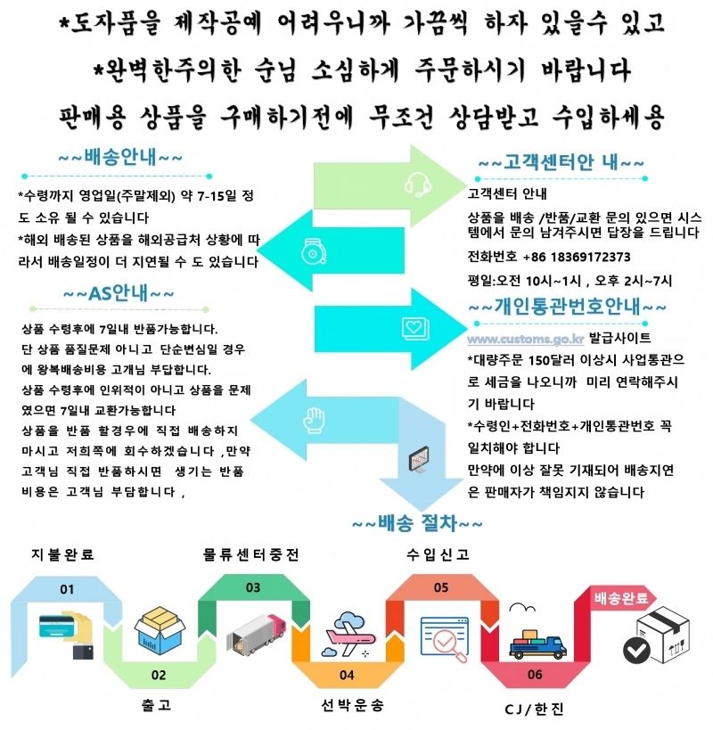 ¹Ýǰ¹è¼Ûºñ : 15,000¿ø (±¸¸ÅÀÚ ´Ü¼ø º¯½ÉÀ¸·Î ÀÎÇÑ ¹Ýǰ¿¡¸¸ ¹Ýǰºñ¿ë ºÎ°ú) Ãʱ⠹è¼Ûºñ°¡ ¹«·á¹è¼ÛÀÌ´ø »óǰÀº ¹Ýǰ¹è¼Ûºñ°¡ ¿Õº¹À¸·Î û±¸µÉ ¼ö ÀÖÀ¸¸ç, ¼ö·®º° ºñ·Ê ¹æ½ÄÀÇ ¹è¼ÛºñÀÎ °æ¿ì ¼ö·®¸¶´Ù ºÎ°úµÇ´Â ºñ¿ëÀÌ »óÀÌÇÏ¿© °ø±Þ»ç¿Í ÇùÀǰ¡ ÇÊ¿äÇÕ´Ï´Ù. Á¦ÁÖ ¹× µµ¼»ê°£ ¹è¼Ûºñ´Â ¹Ýǰ ¹è¼Ûºñ¿¡ Æ÷ÇÔµÇÁö ¾ÊÀ¸´Ï °ø±Þ»ç¿Í ÇùÀǰ¡ ÇÊ¿äÇÕ´Ï´Ù. ±³È¯ ºñ¿ëÀº º¸Åë ¹Ýǰ¹è¼ÛºñÀÇ 2¹è ºÎ°úµÇ³ª, °æ¿ì¿¡ µû¶ó ´Ù¸¦ ¼ö ÀÖÀ¸¹Ç·Î °ø±Þ»ç¿¡ ¹®Àǹٶø´Ï´Ù. |