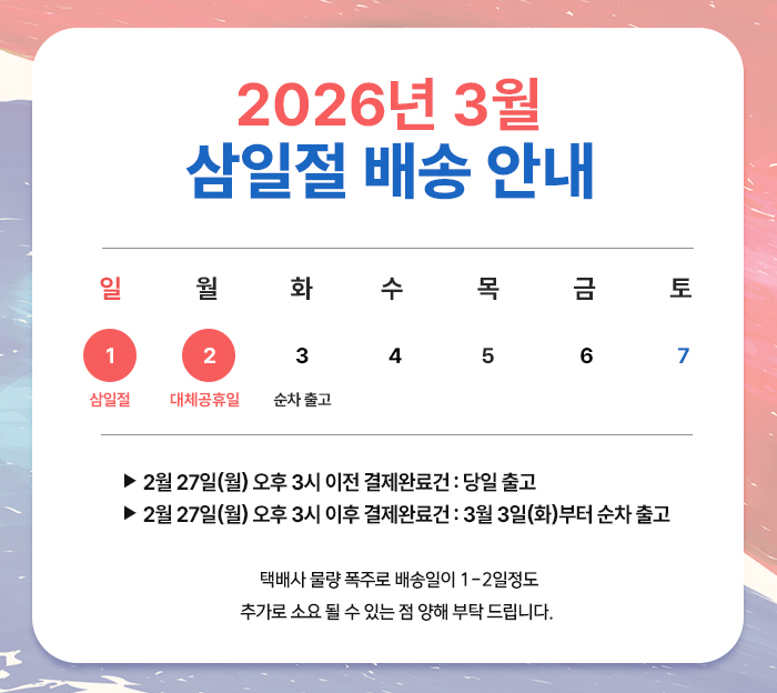 ¹Ýǰ¹è¼Ûºñ : 3,000¿ø (±¸¸ÅÀÚ ´Ü¼ø º¯½ÉÀ¸·Î ÀÎÇÑ ¹Ýǰ¿¡¸¸ ¹Ýǰºñ¿ë ºÎ°ú) Ãʱ⠹è¼Ûºñ°¡ ¹«·á¹è¼ÛÀÌ´ø »óǰÀº ¹Ýǰ¹è¼Ûºñ°¡ ¿Õº¹À¸·Î û±¸µÉ ¼ö ÀÖÀ¸¸ç, ¼ö·®º° ºñ·Ê ¹æ½ÄÀÇ ¹è¼ÛºñÀÎ °æ¿ì ¼ö·®¸¶´Ù ºÎ°úµÇ´Â ºñ¿ëÀÌ »óÀÌÇÏ¿© °ø±Þ»ç¿Í ÇùÀǰ¡ ÇÊ¿äÇÕ´Ï´Ù. Á¦ÁÖ ¹× µµ¼»ê°£ ¹è¼Ûºñ´Â ¹Ýǰ ¹è¼Ûºñ¿¡ Æ÷ÇÔµÇÁö ¾ÊÀ¸´Ï °ø±Þ»ç¿Í ÇùÀǰ¡ ÇÊ¿äÇÕ´Ï´Ù. ±³È¯ ºñ¿ëÀº º¸Åë ¹Ýǰ¹è¼ÛºñÀÇ 2¹è ºÎ°úµÇ³ª, °æ¿ì¿¡ µû¶ó ´Ù¸¦ ¼ö ÀÖÀ¸¹Ç·Î °ø±Þ»ç¿¡ ¹®Àǹٶø´Ï´Ù. |