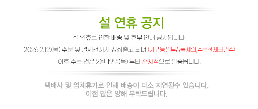 ¹Ýǰ¹è¼Ûºñ : 3,000¿ø (±¸¸ÅÀÚ ´Ü¼ø º¯½ÉÀ¸·Î ÀÎÇÑ ¹Ýǰ¿¡¸¸ ¹Ýǰºñ¿ë ºÎ°ú) Ãʱ⠹è¼Ûºñ°¡ ¹«·á¹è¼ÛÀÌ´ø »óǰÀº ¹Ýǰ¹è¼Ûºñ°¡ ¿Õº¹À¸·Î û±¸µÉ ¼ö ÀÖÀ¸¸ç, ¼ö·®º° ºñ·Ê ¹æ½ÄÀÇ ¹è¼ÛºñÀÎ °æ¿ì ¼ö·®¸¶´Ù ºÎ°úµÇ´Â ºñ¿ëÀÌ »óÀÌÇÏ¿© °ø±Þ»ç¿Í ÇùÀǰ¡ ÇÊ¿äÇÕ´Ï´Ù. Á¦ÁÖ ¹× µµ¼»ê°£ ¹è¼Ûºñ´Â ¹Ýǰ ¹è¼Ûºñ¿¡ Æ÷ÇÔµÇÁö ¾ÊÀ¸´Ï °ø±Þ»ç¿Í ÇùÀǰ¡ ÇÊ¿äÇÕ´Ï´Ù. ±³È¯ ºñ¿ëÀº º¸Åë ¹Ýǰ¹è¼ÛºñÀÇ 2¹è ºÎ°úµÇ³ª, °æ¿ì¿¡ µû¶ó ´Ù¸¦ ¼ö ÀÖÀ¸¹Ç·Î °ø±Þ»ç¿¡ ¹®Àǹٶø´Ï´Ù. |