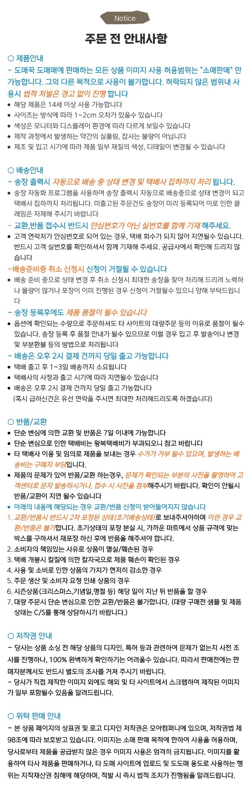 ¹Ýǰ¹è¼Ûºñ : 4,000¿ø (±¸¸ÅÀÚ ´Ü¼ø º¯½ÉÀ¸·Î ÀÎÇÑ ¹Ýǰ¿¡¸¸ ¹Ýǰºñ¿ë ºÎ°ú) Ãʱ⠹è¼Ûºñ°¡ ¹«·á¹è¼ÛÀÌ´ø »óǰÀº ¹Ýǰ¹è¼Ûºñ°¡ ¿Õº¹À¸·Î û±¸µÉ ¼ö ÀÖÀ¸¸ç, ¼ö·®º° ºñ·Ê ¹æ½ÄÀÇ ¹è¼ÛºñÀÎ °æ¿ì ¼ö·®¸¶´Ù ºÎ°úµÇ´Â ºñ¿ëÀÌ »óÀÌÇÏ¿© °ø±Þ»ç¿Í ÇùÀǰ¡ ÇÊ¿äÇÕ´Ï´Ù. Á¦ÁÖ ¹× µµ¼»ê°£ ¹è¼Ûºñ´Â ¹Ýǰ ¹è¼Ûºñ¿¡ Æ÷ÇÔµÇÁö ¾ÊÀ¸´Ï °ø±Þ»ç¿Í ÇùÀǰ¡ ÇÊ¿äÇÕ´Ï´Ù. ±³È¯ ºñ¿ëÀº º¸Åë ¹Ýǰ¹è¼ÛºñÀÇ 2¹è ºÎ°úµÇ³ª, °æ¿ì¿¡ µû¶ó ´Ù¸¦ ¼ö ÀÖÀ¸¹Ç·Î °ø±Þ»ç¿¡ ¹®Àǹٶø´Ï´Ù. |